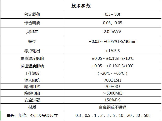 彈性體采用剪切梁,剛性好??箓?cè)向、抗偏載、低高度、高精度。全密封、規(guī)格全。適用于平臺秤、汽車衡、軌道衡及料物位測量與控制??蛇x擇一體化標準信號輸出,二線制,4~20mA或12~36V輸出。